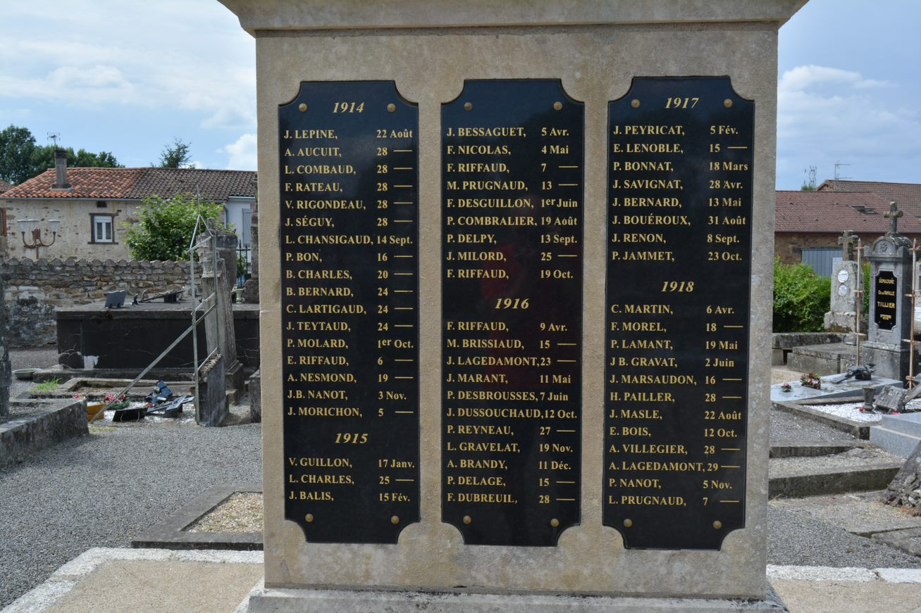 Inscription sur le monument : Peyrat-de-Bellac (87)