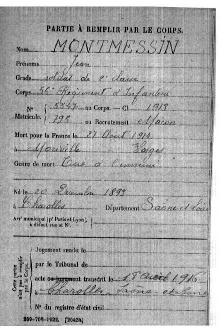 Mère : Mme Vve MONTMESSIN née P,,LLUAT? Christine