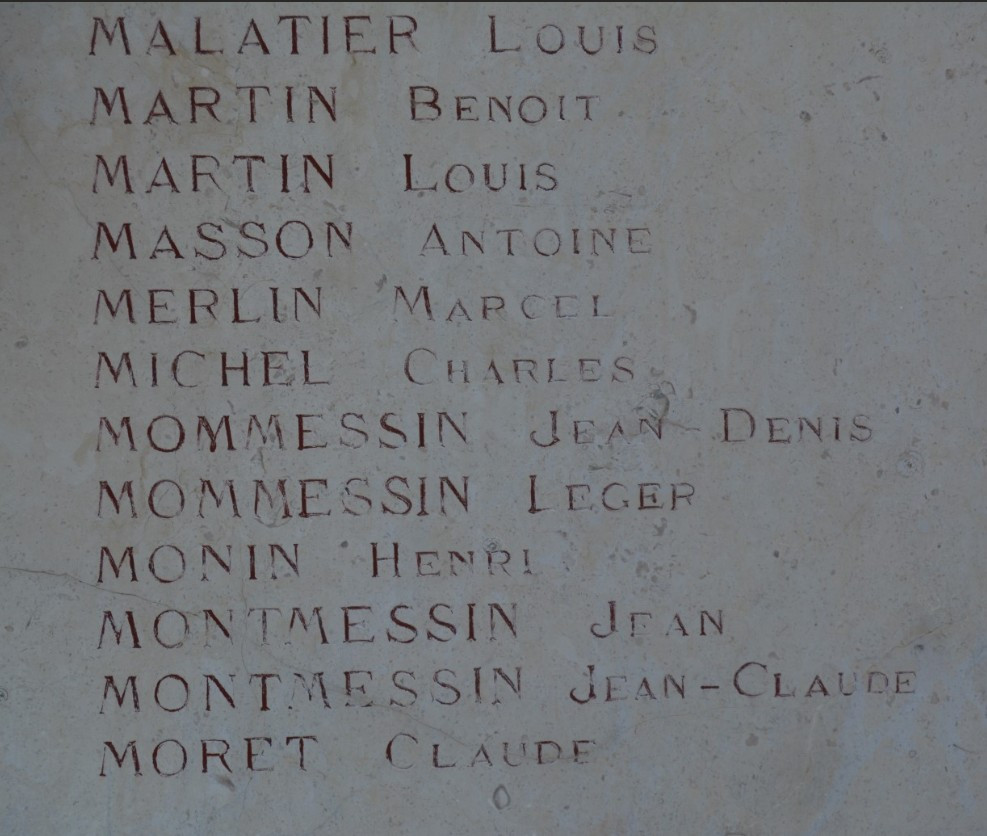 Inscription sur le monument : Charolles (71) Moriville (88)