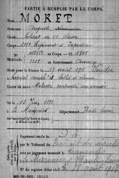 Genre de décès : Maladie contractée aux armées