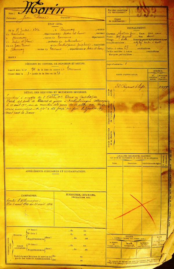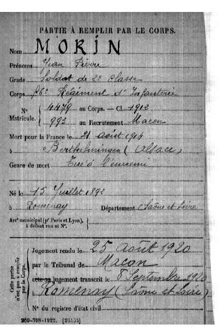Secours immédiat de 150 Francs a été payé au père le 03/07/1915 - Au 23,07,1920, parents mariés vivants -