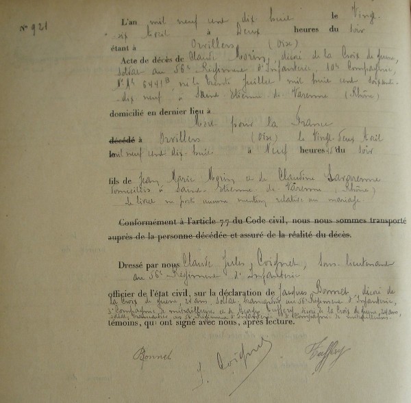 Lieu de décès : Orvillers-Sorel
