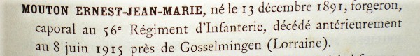 Père : MOUTON Jean Marie