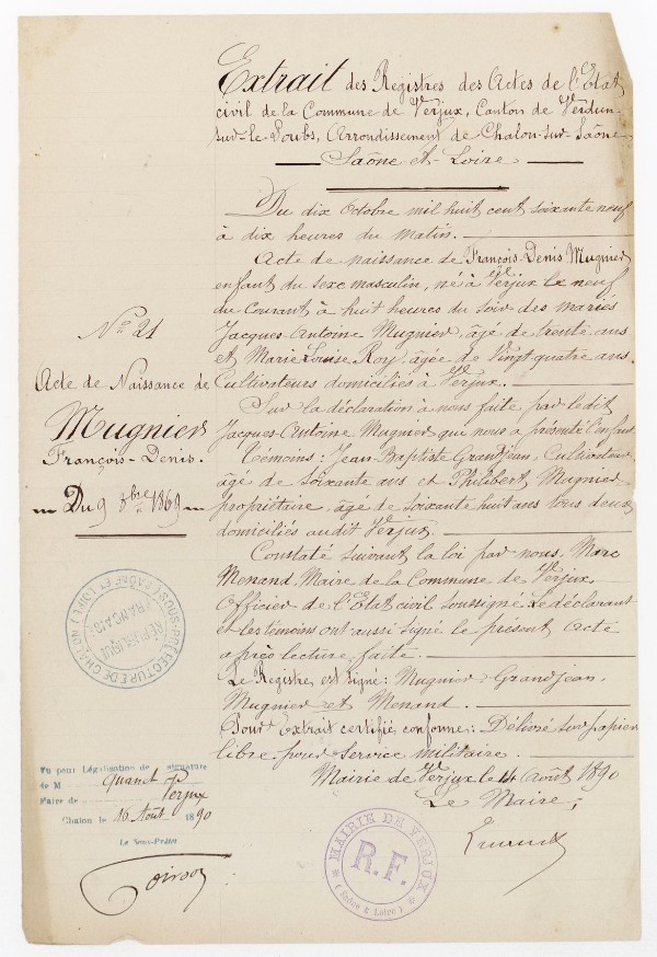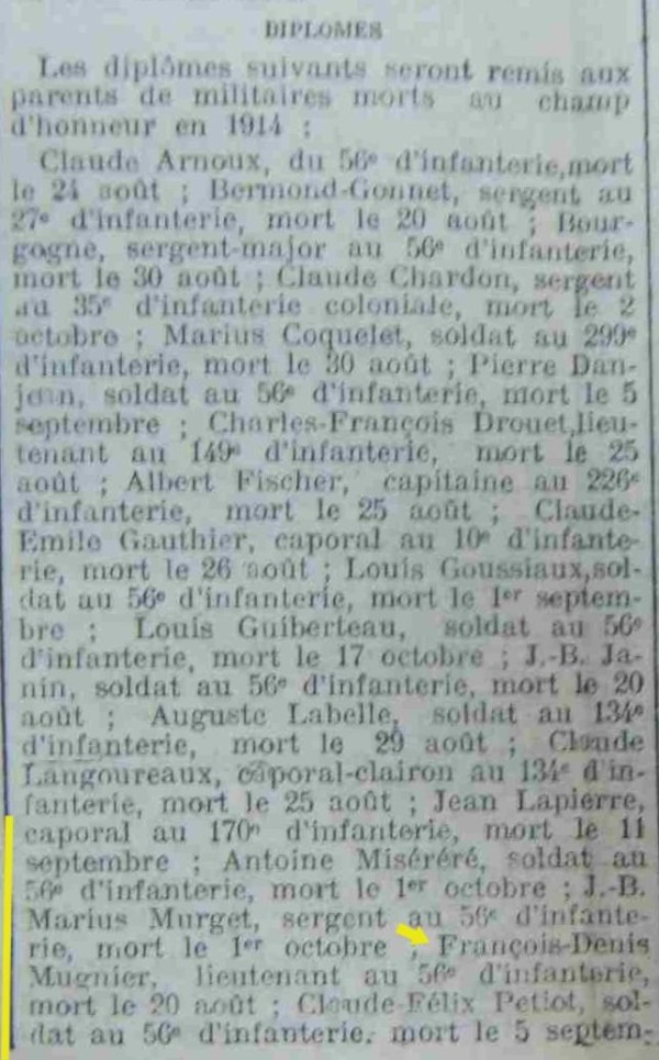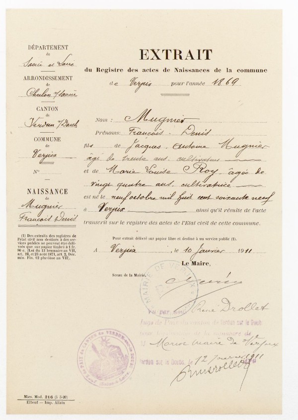 Père : MUGNIER Jacques Antoine