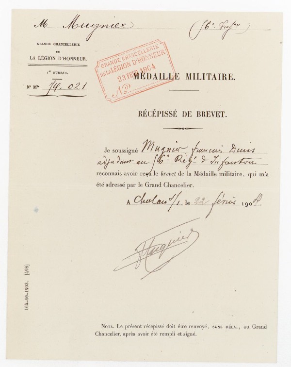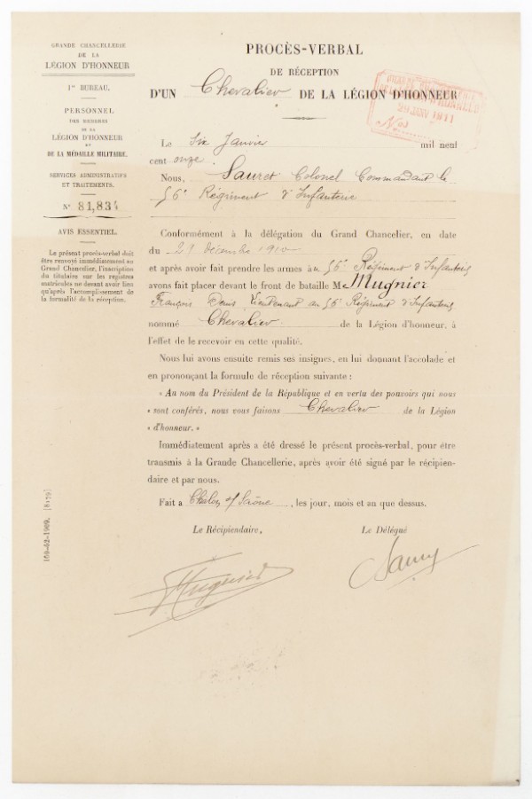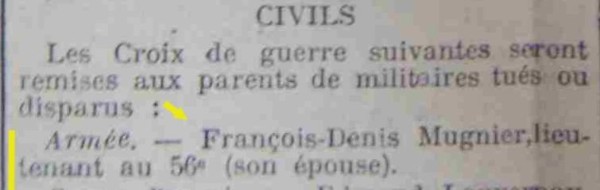 Citation à l`ordre de l`armée Remise à Epouse (1)