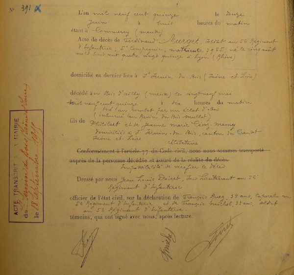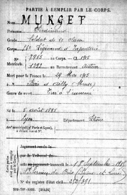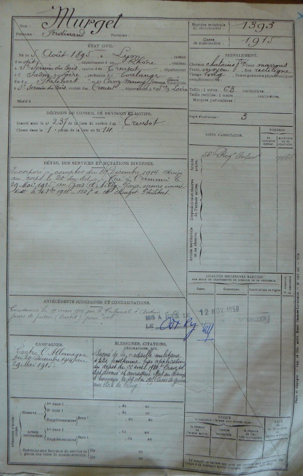 Payé secours immédiat le 16/10/1915, 150 Francs à M. MURGET Philibert au 04/09/1919 père veuf vivant