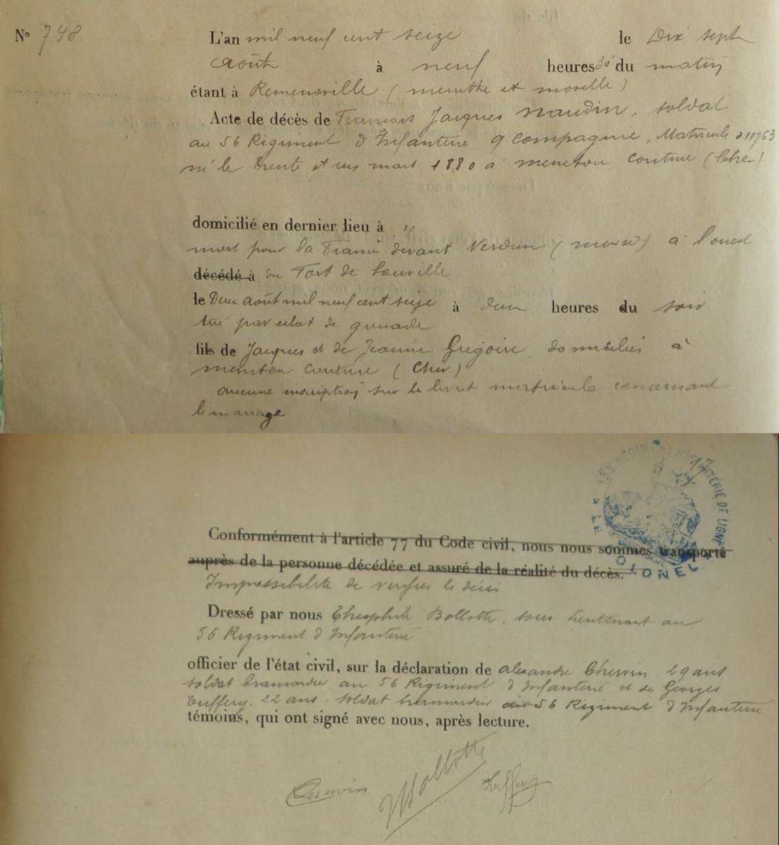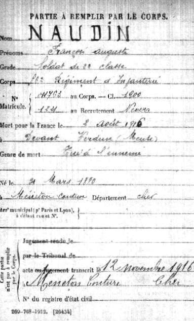 Lieu précis de décès : à l'Ouest du Fort de Souville