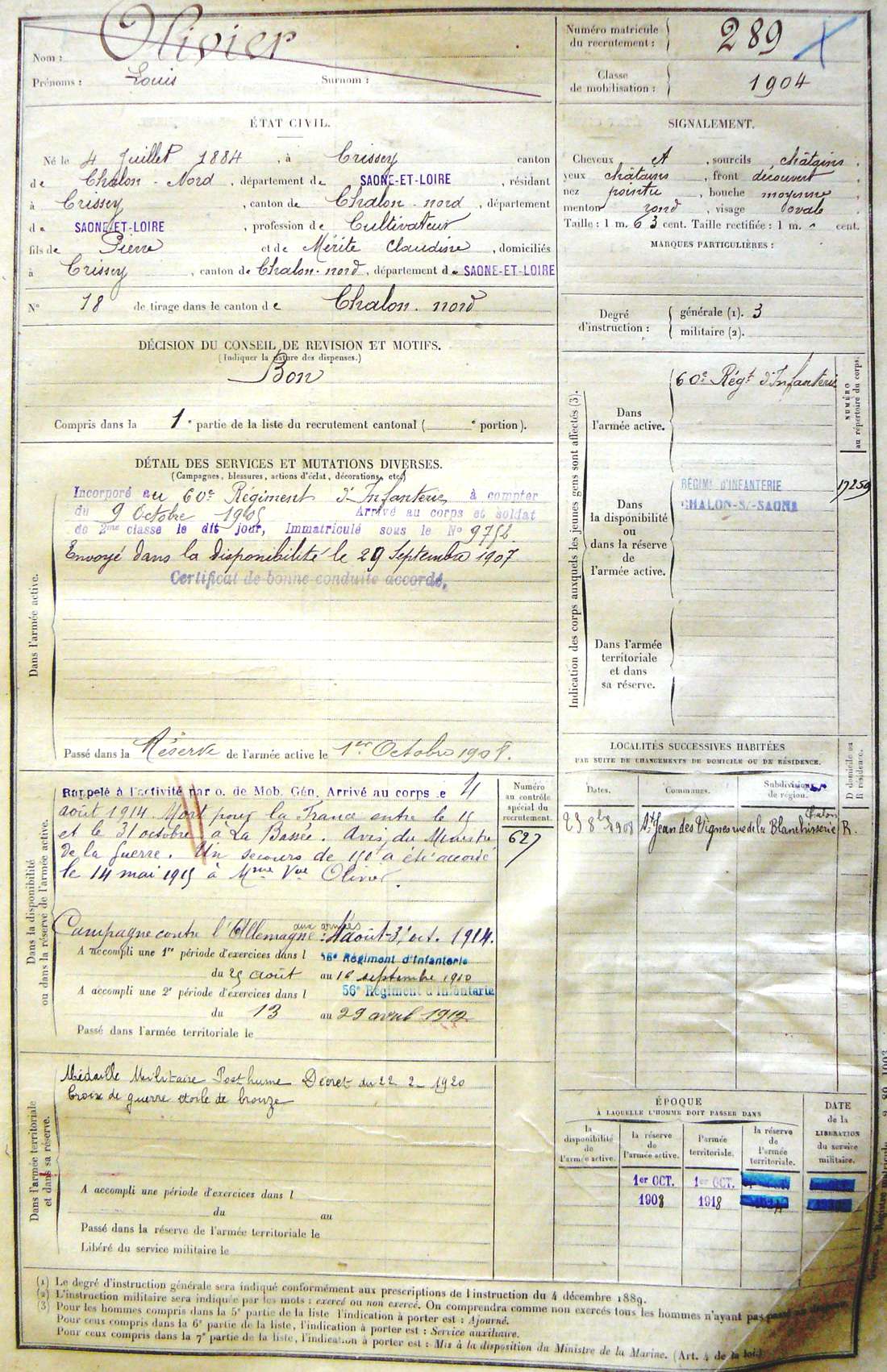 Père : OLIVIER Pierre