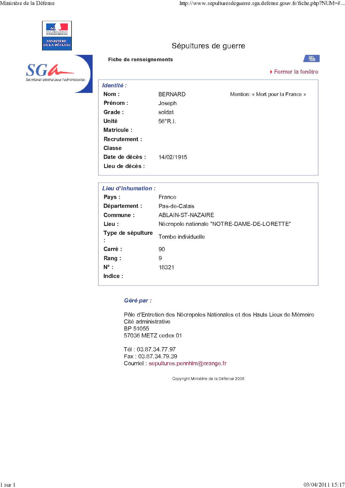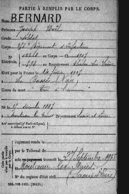 Genre de décès : Tué à l`ennemi