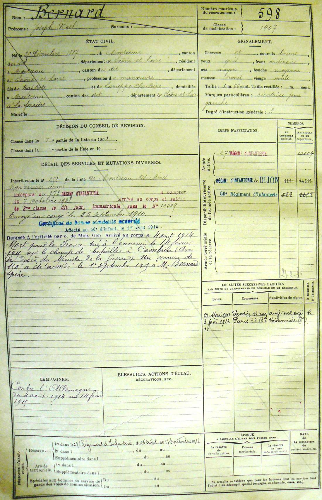Ville de recrutement : Chalon-sur-Saône