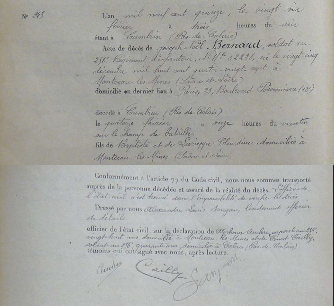Lieu de décès : Cambrin