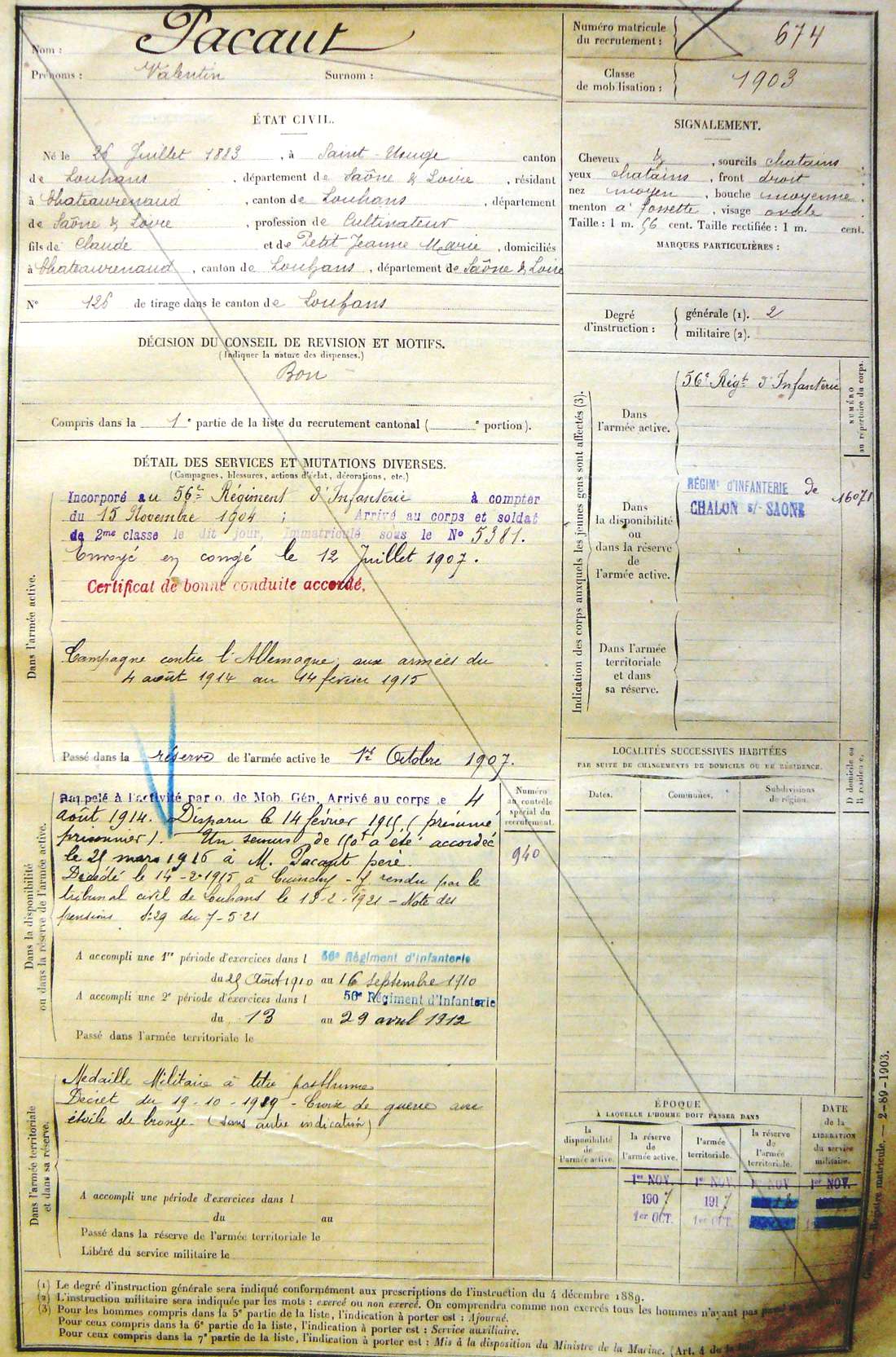 Ville de recrutement : Chalon-sur-Saône