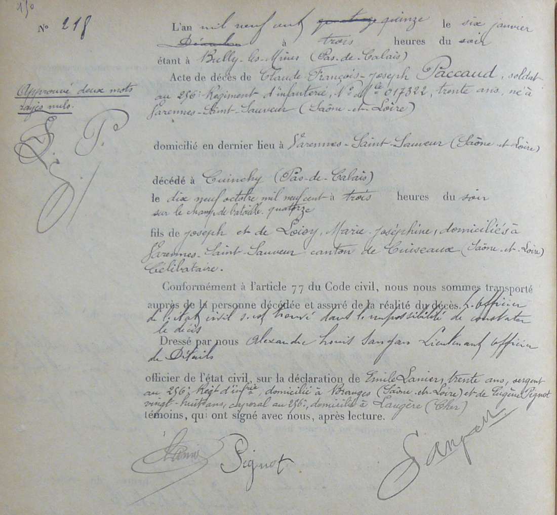 Lieu de décès : Cuinchy
