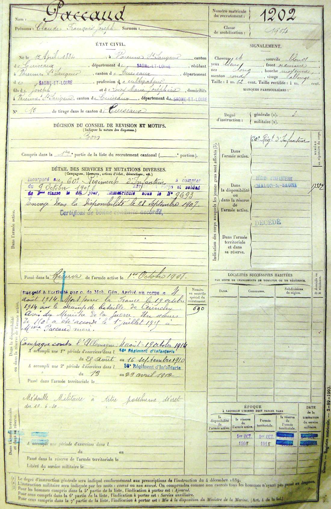 Ville de recrutement : Chalon-sur-Saône