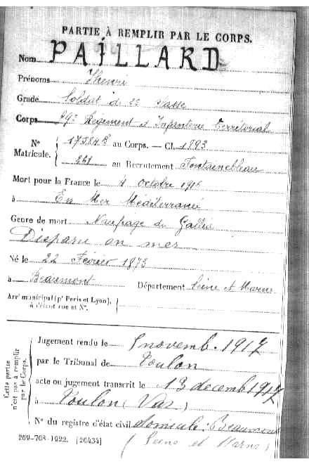Enfants : Henriette 16 ans, Yvonne Francine 8 ans. Au 15/06/1920, épouse veuve non remariée.