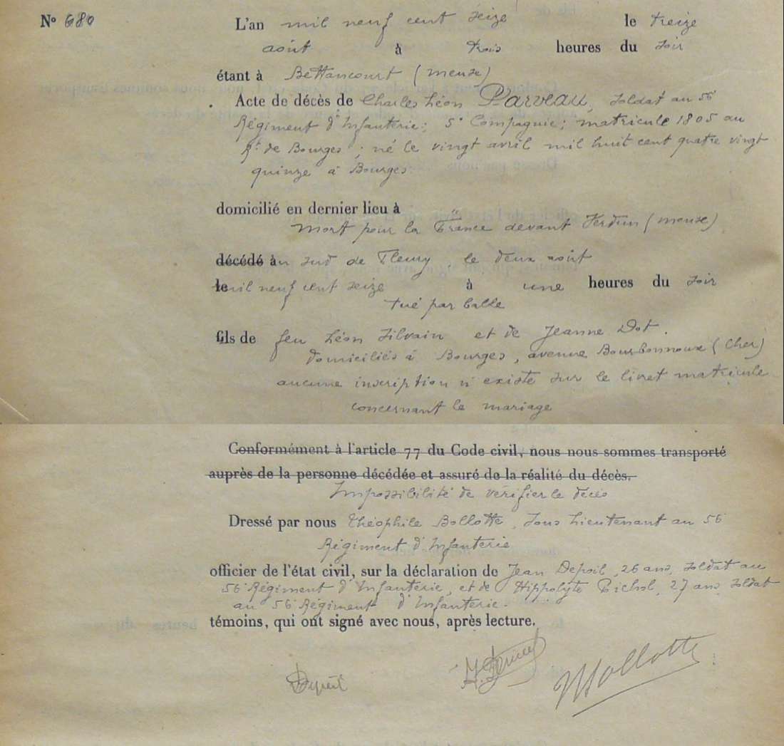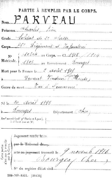 Mère : Mme Vve PARVEAU née DOT Jeanne