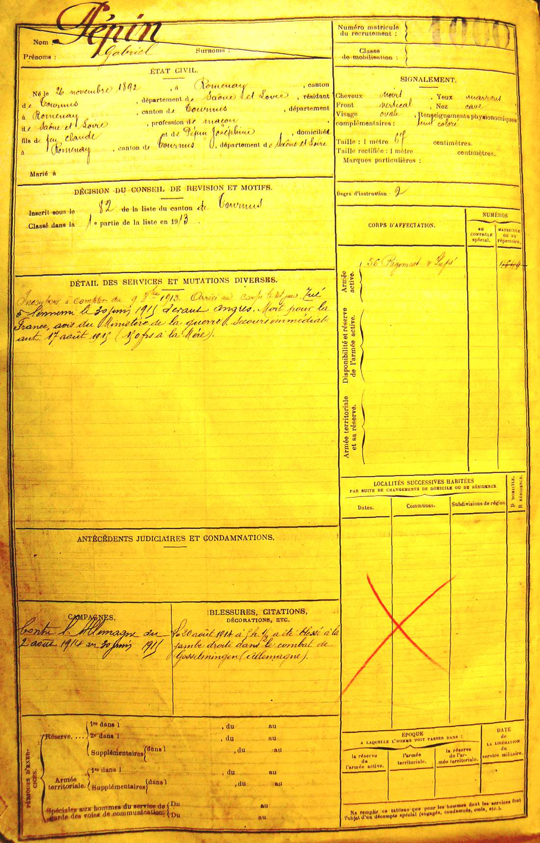 Date de naissance : 26/11/1892
