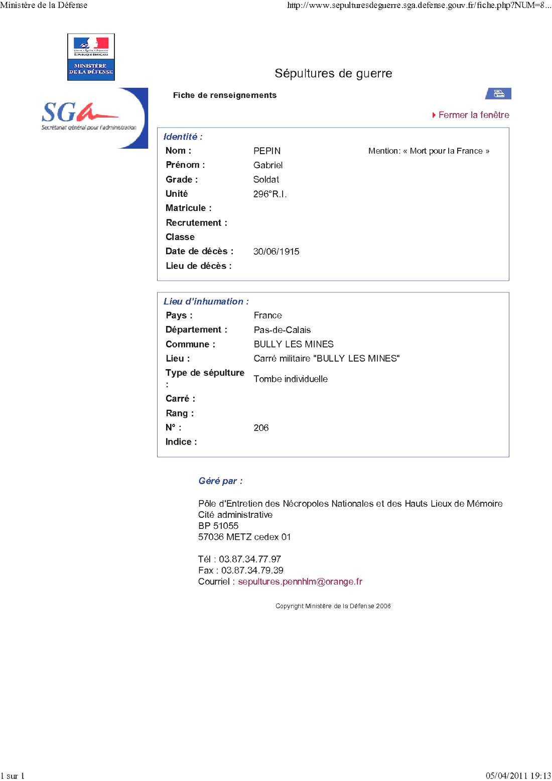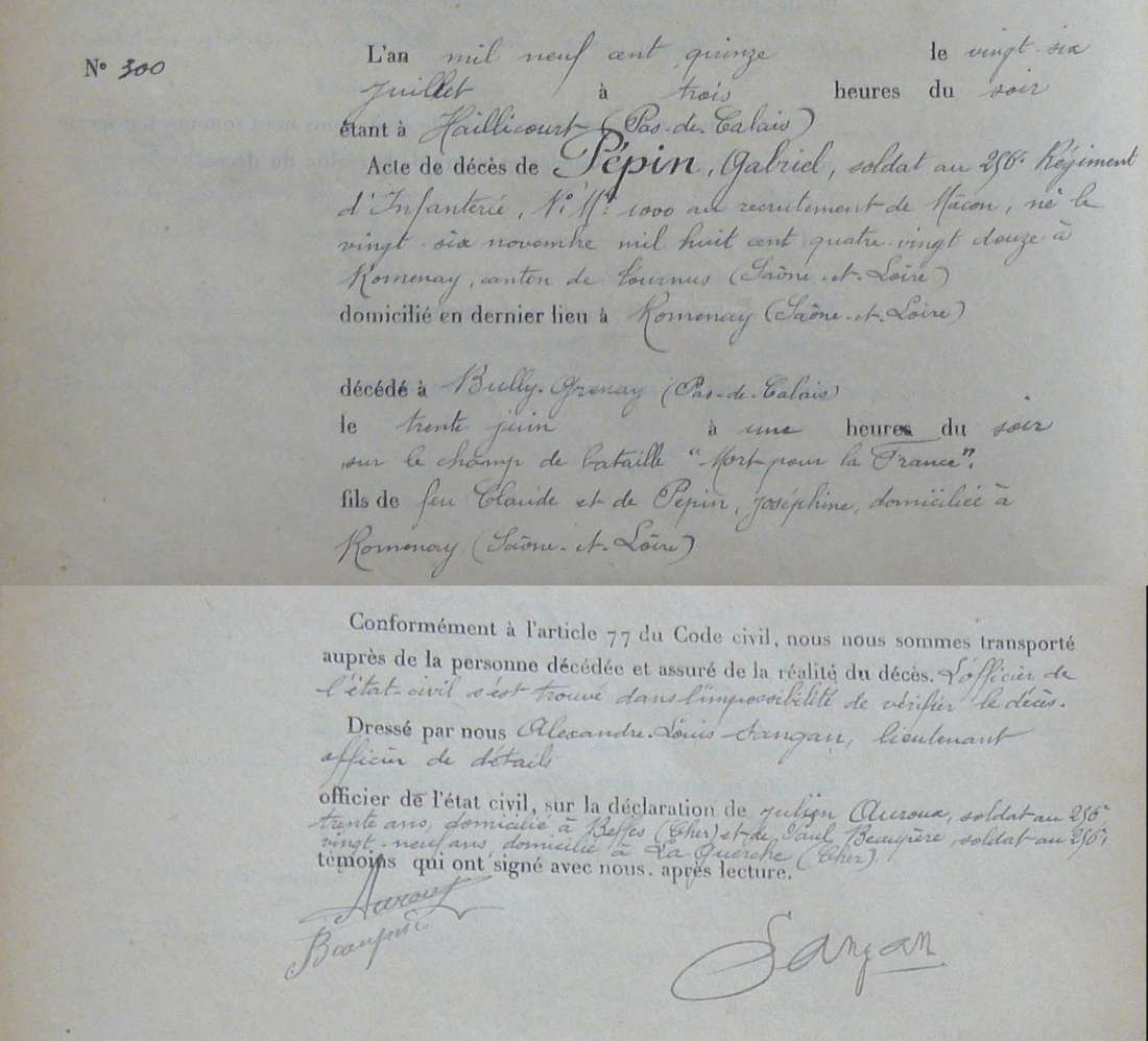 Lieu de décès : Bully-Grenay