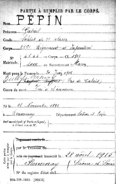 Genre de décès : Tué à l`ennemi