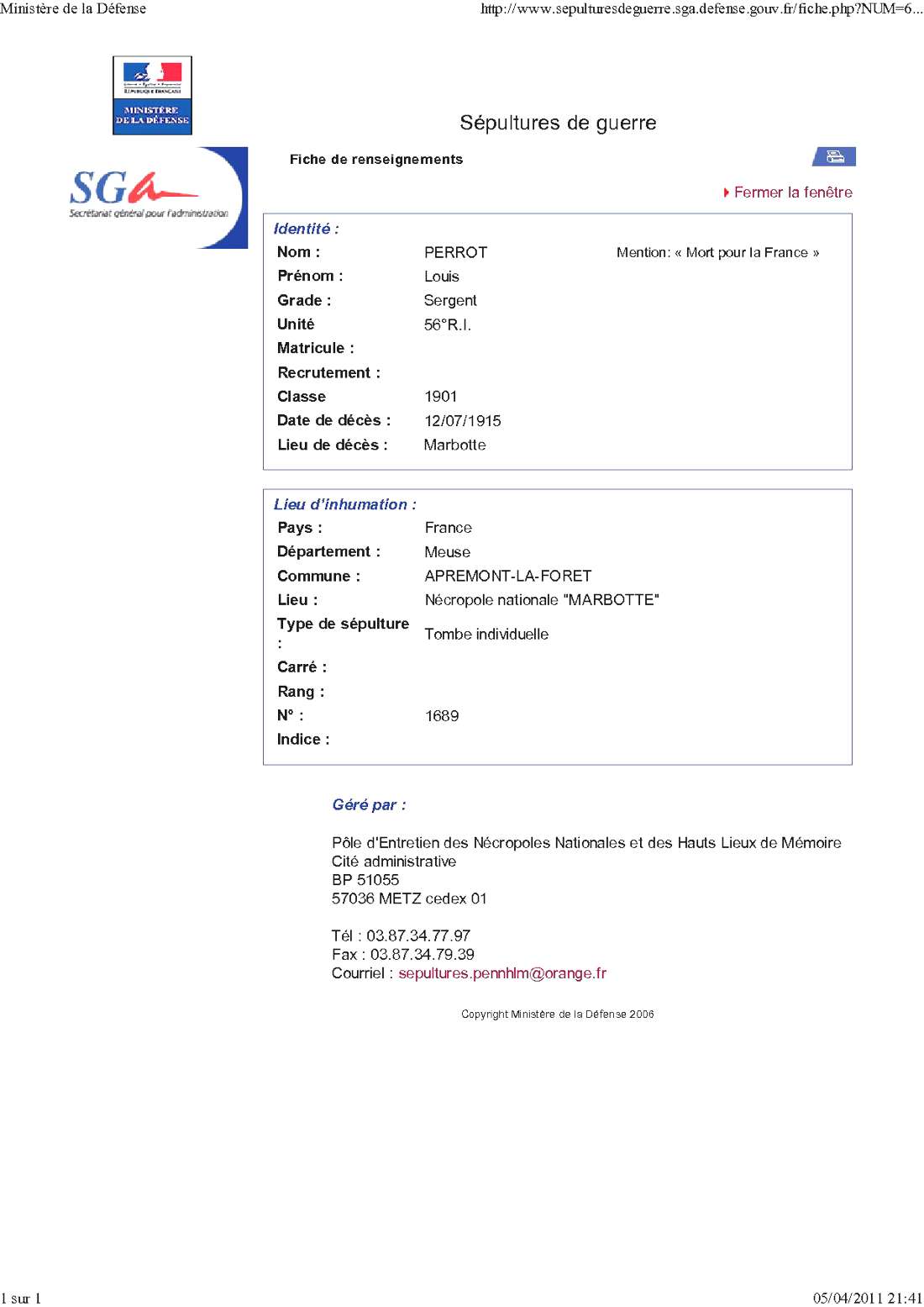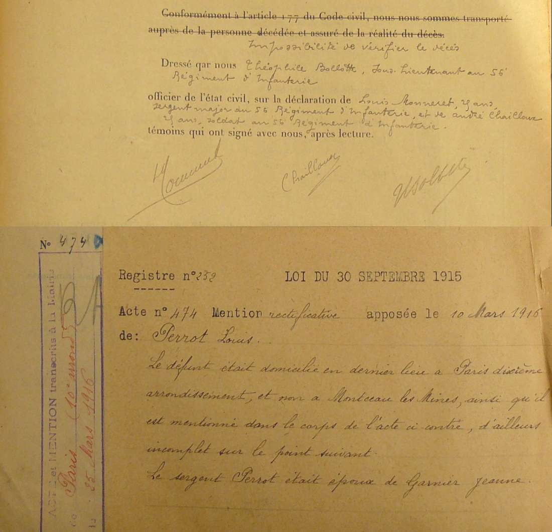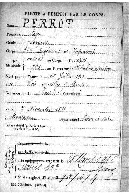 Epouse : Vve Perrot Garnier (Epouse veuve vivante non remariée)