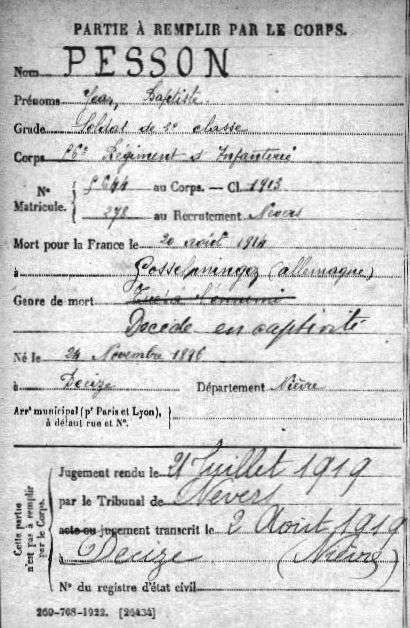 Dans la fiche Mémoire des Hommes, il existe une ambiguité entre la date de naissance et la Classe ainsi que sur le genre du décès.
