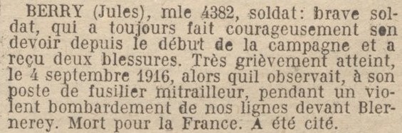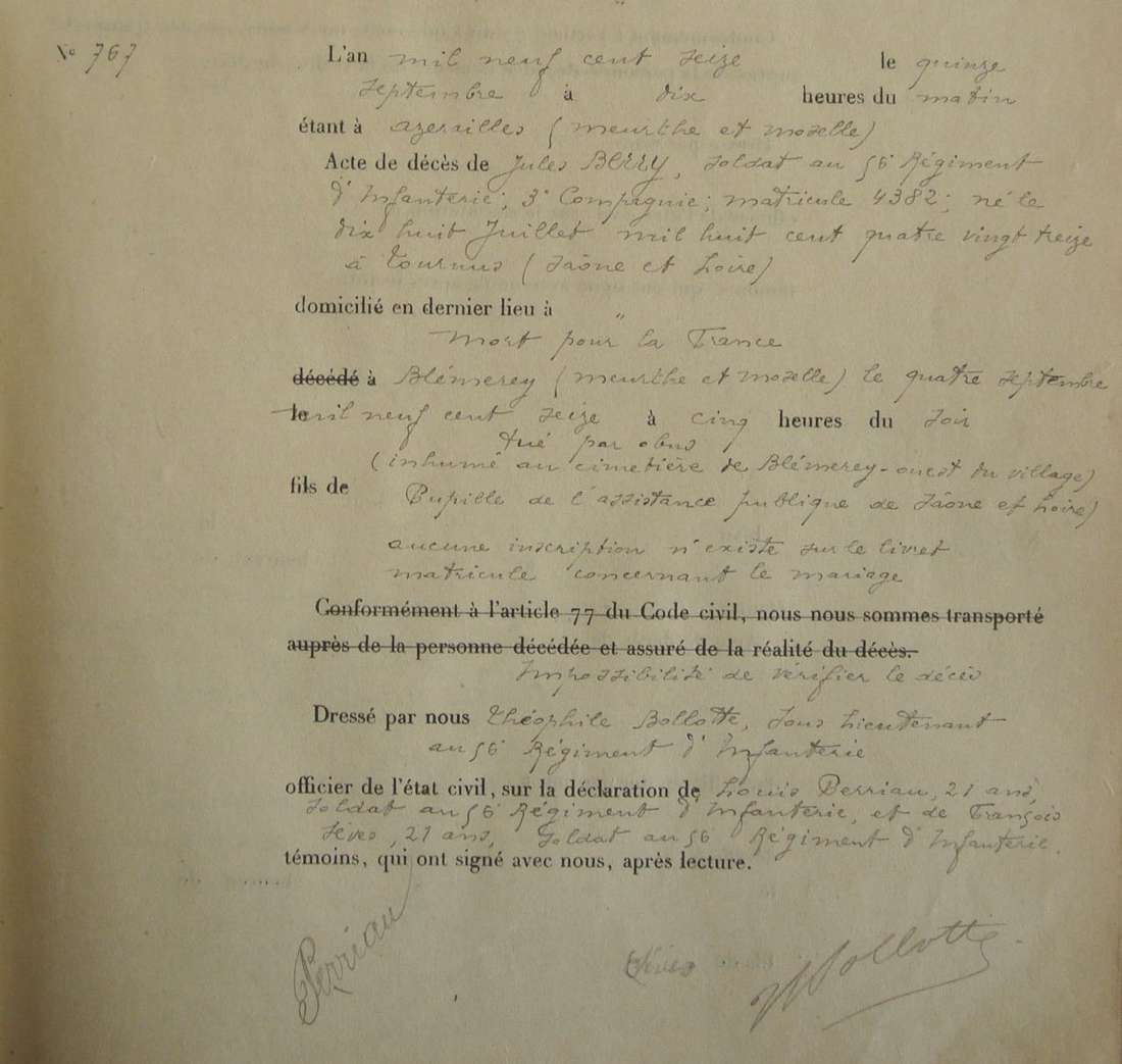 Genre de décès : Tué par un éclat d'obus