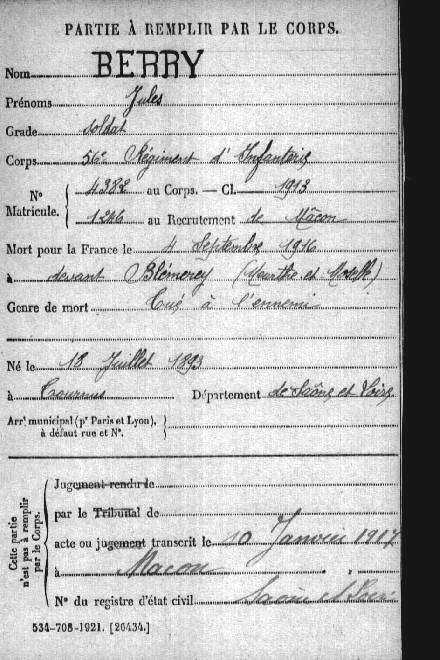 Pupille de l'Assistance publique de Saône-et-Loire - 1ère inhumation cimetière de Blémerey, ouest du village.