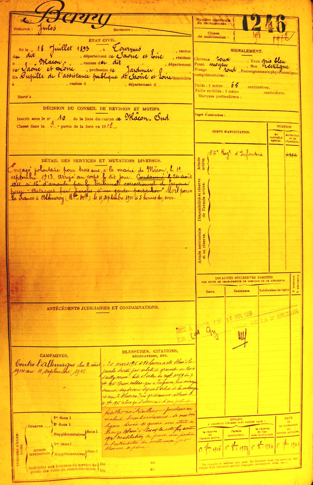 Régiment : 56ème R.I.