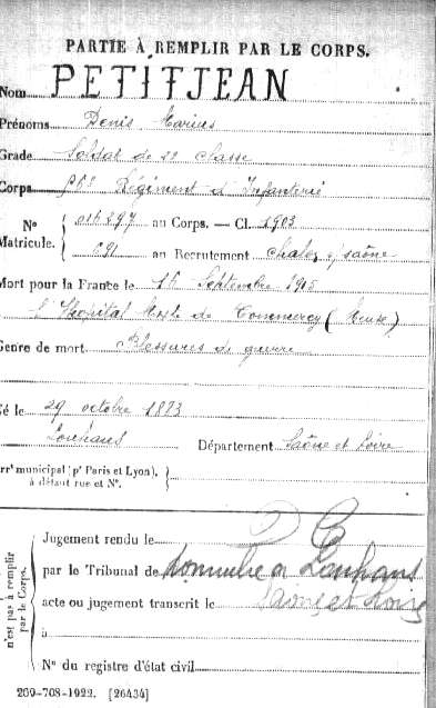 Epouse : Mme Vve PETITJEAN née GAUTHIER Marguerite