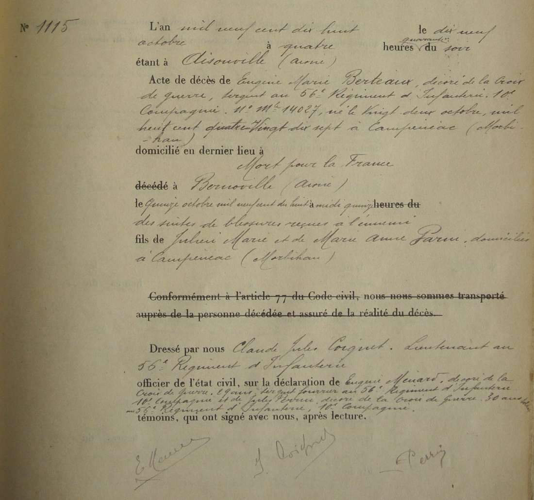 Lieu de décès : Bernoville
