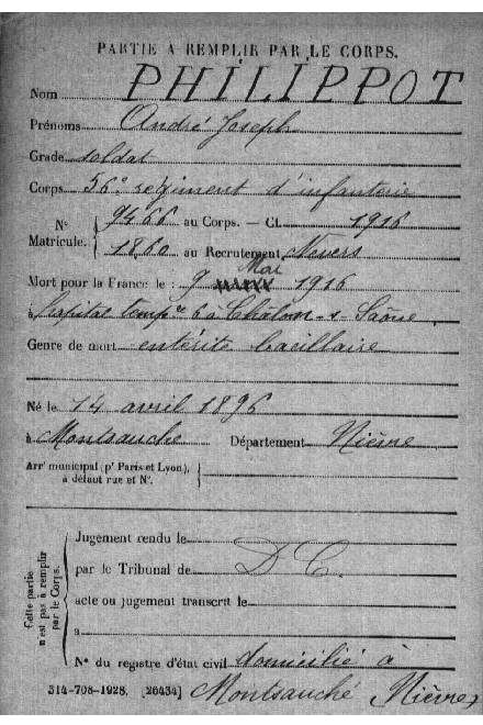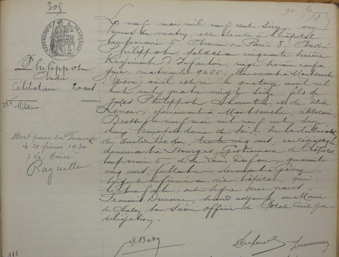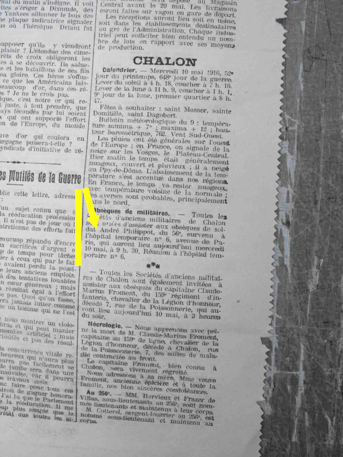 Avis d'obsèques = Courrier de S&L du 10-05-1916