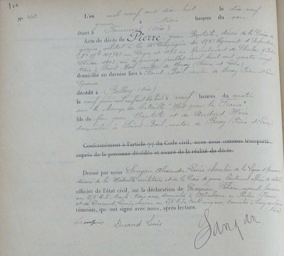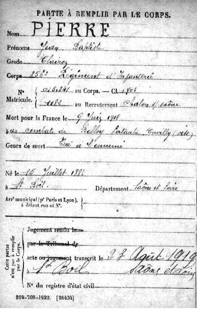 Lieu précis de décès : Combat de Belloy-Lataube