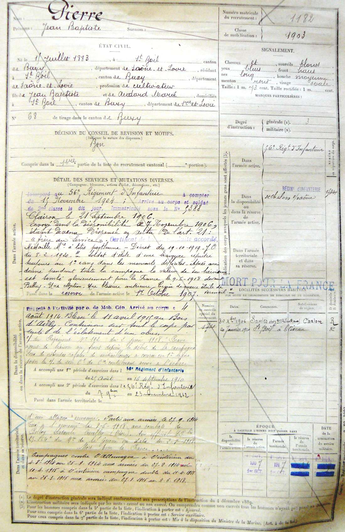 Genre de décès : Tué à l`ennemi