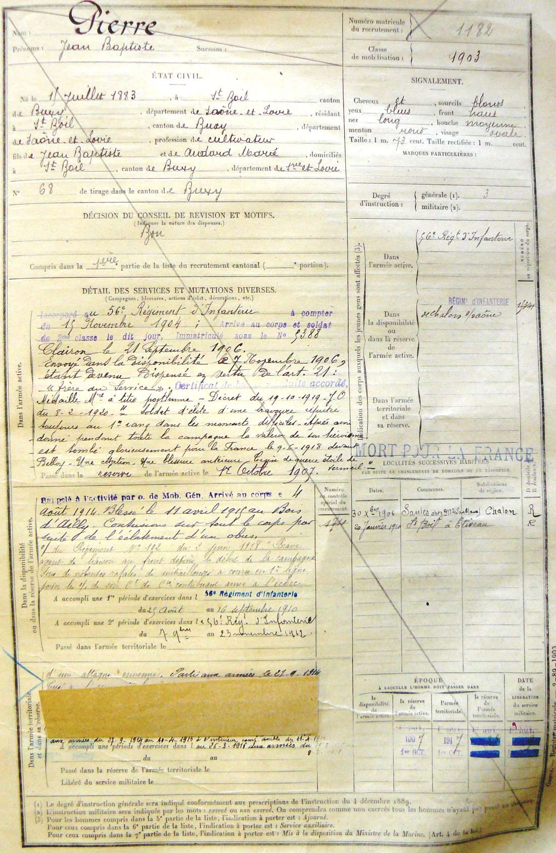 Ville de recrutement : Chalon-sur-Saône