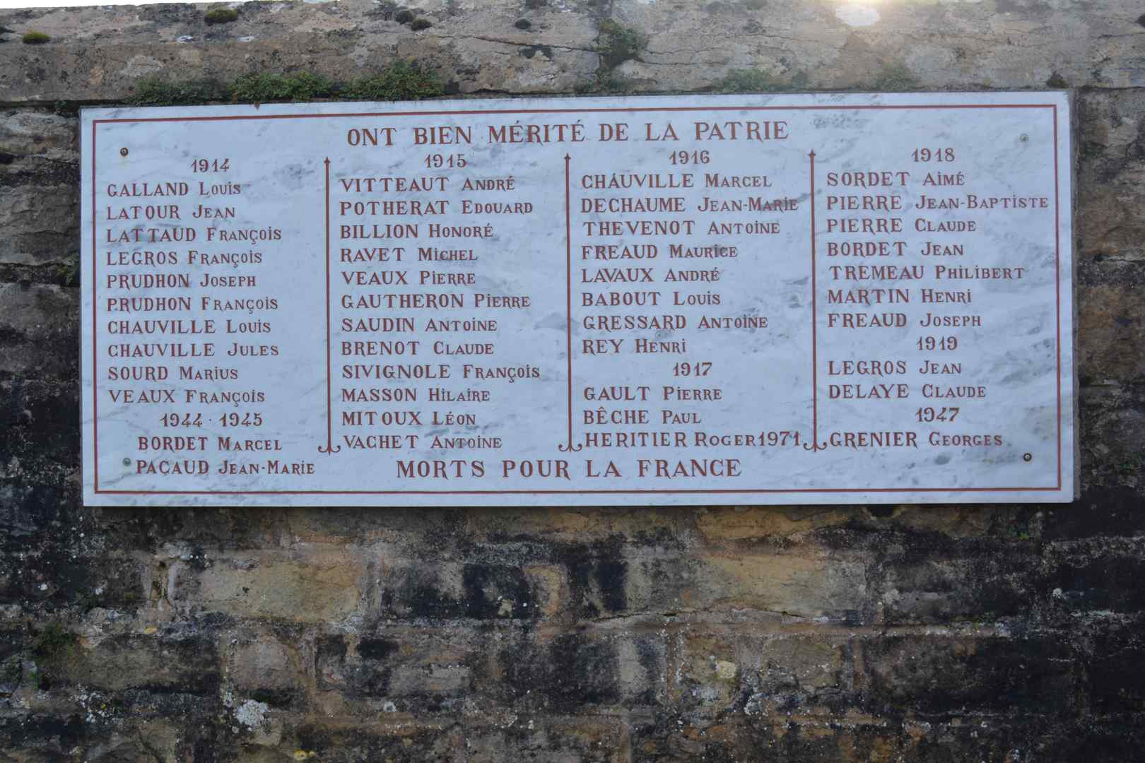 Inscription sur le monument : Saint-Boil (71)