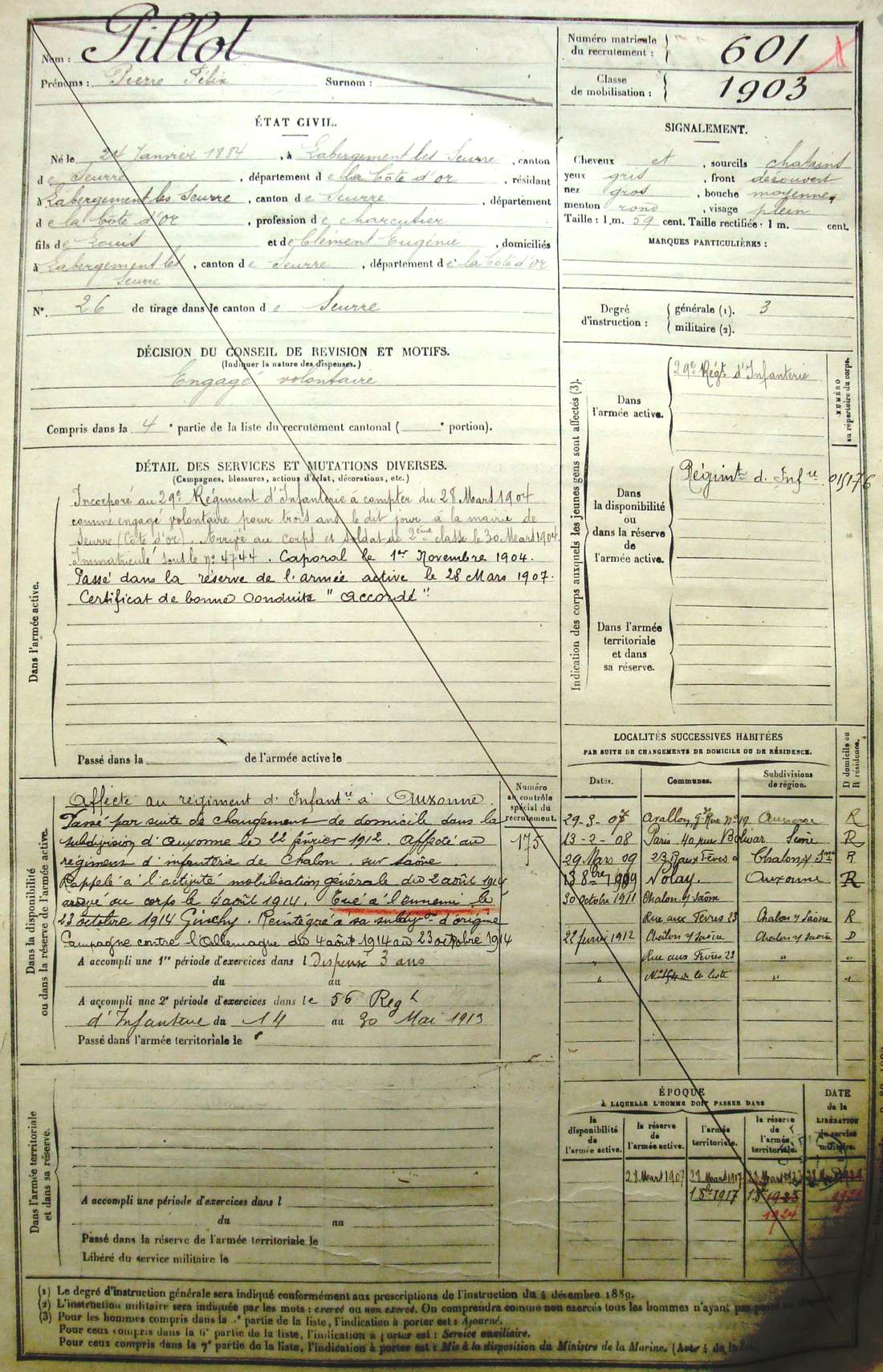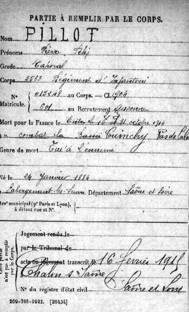 - Le nom de Pierre PILLOT n'est pas gravé sur le Monument aux Morts de Labergement-lès-Seurre mais sur celui de Chalon-sur-Saône (71).