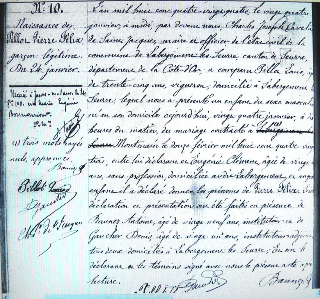 - Marié le 24/10/1911 à Jours-en-Vaux (21) - Enfants : Madeleine, 7 ans Suzanne, 5 ans.