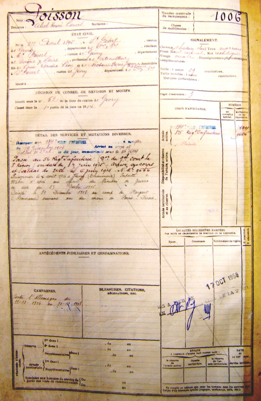 Régiment : 56ème R.I.