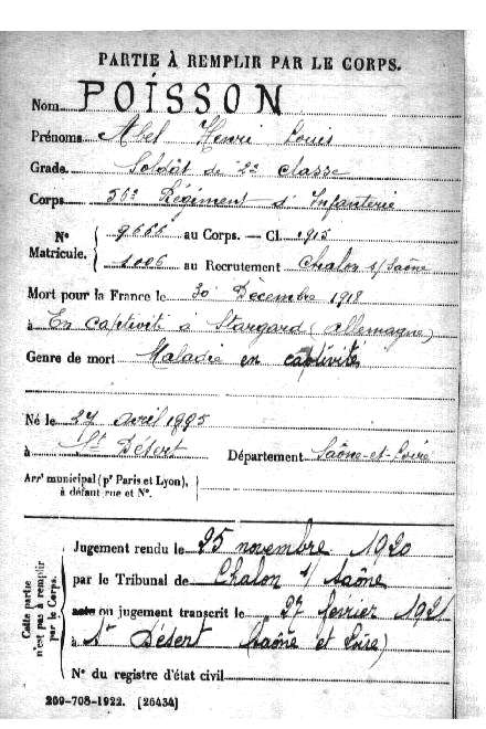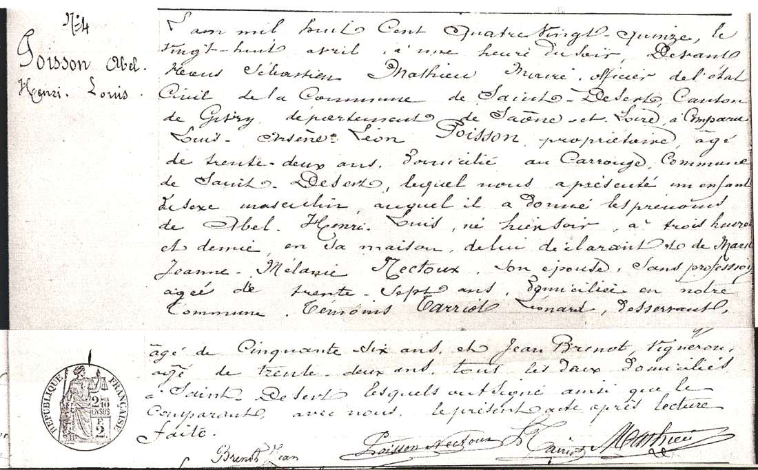 Mère : Mme Vve POISSON