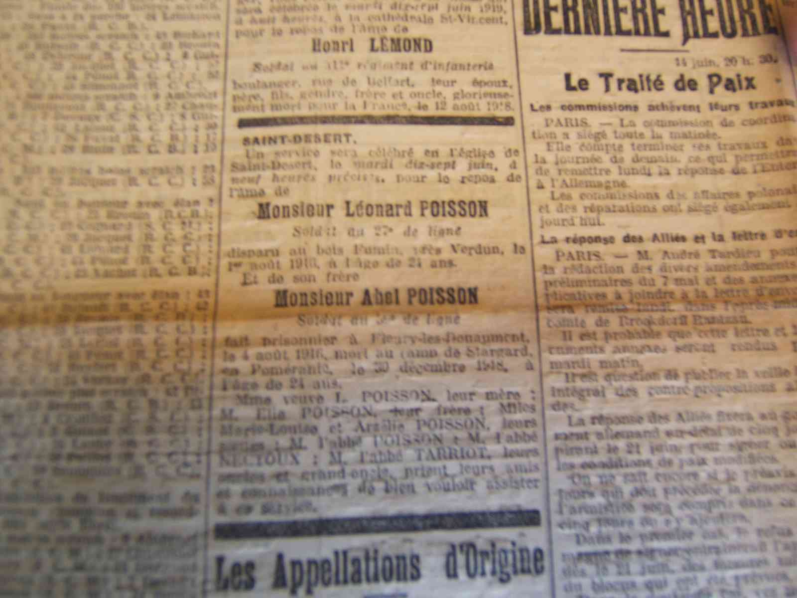 Avis de service religieux = Courrier S&L du 15-06-1919
