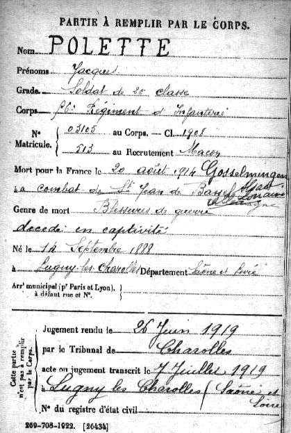 Lieu précis de décès : SAINT JEAN DE BASSEL