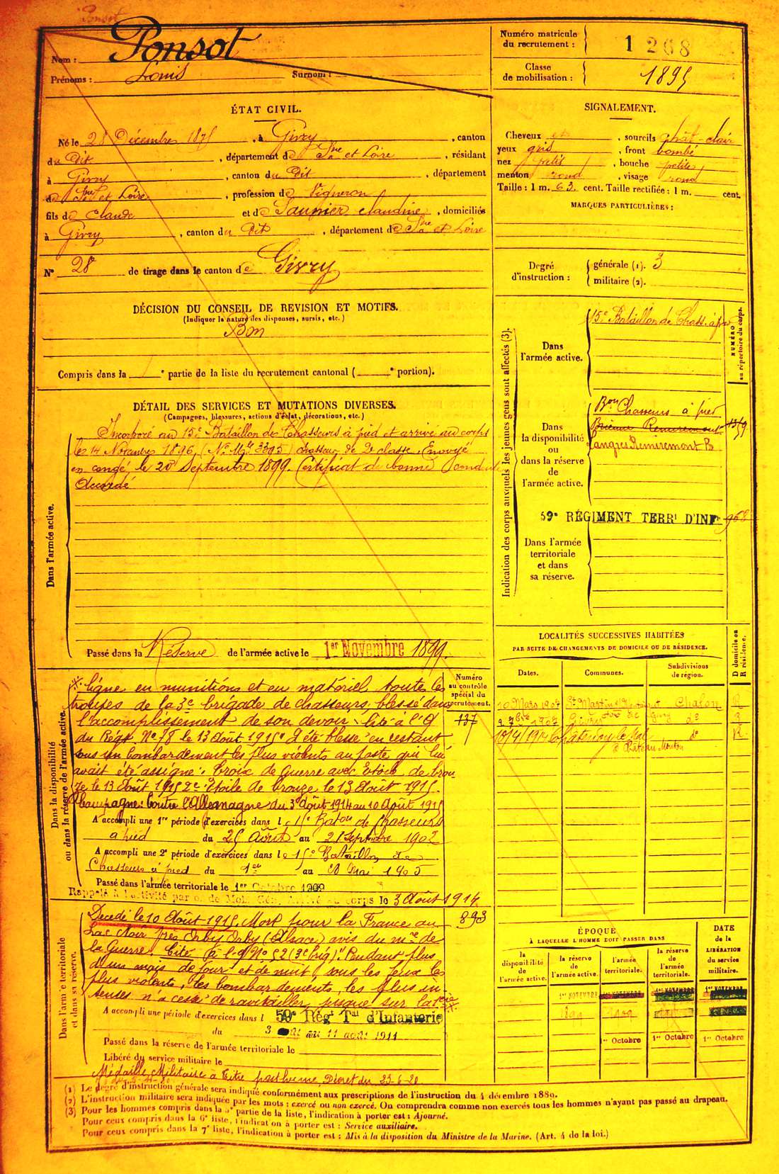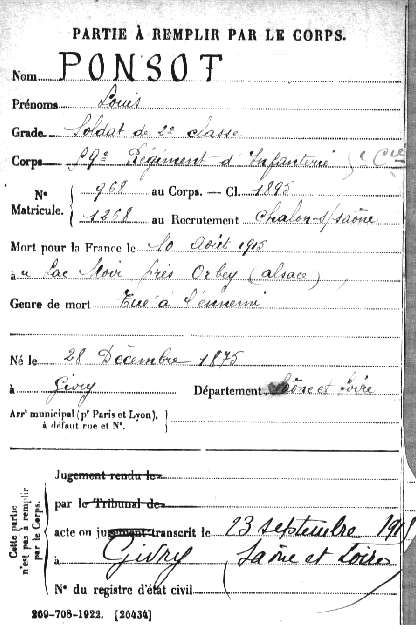 Genre de décès : Tué à l'ennemi