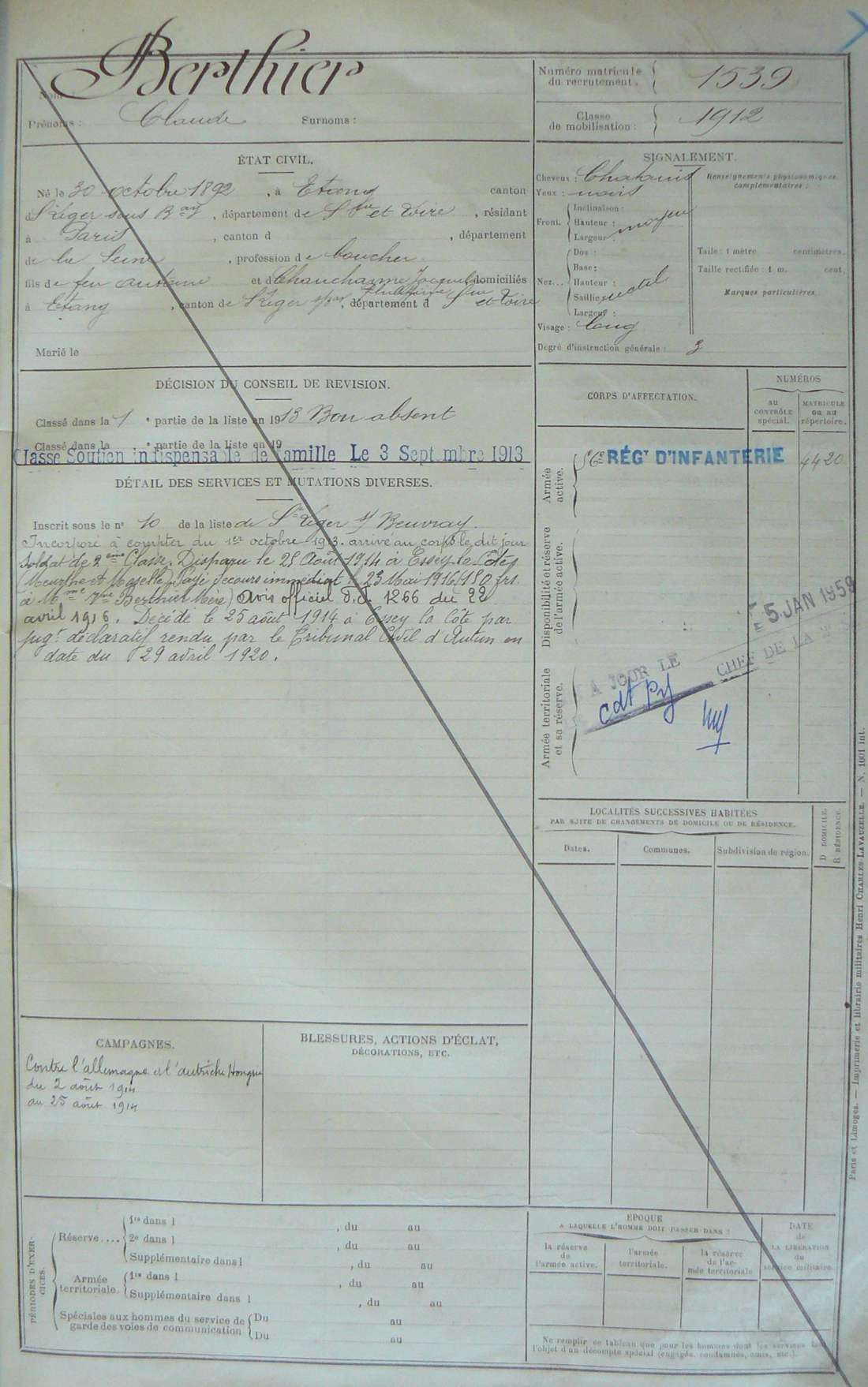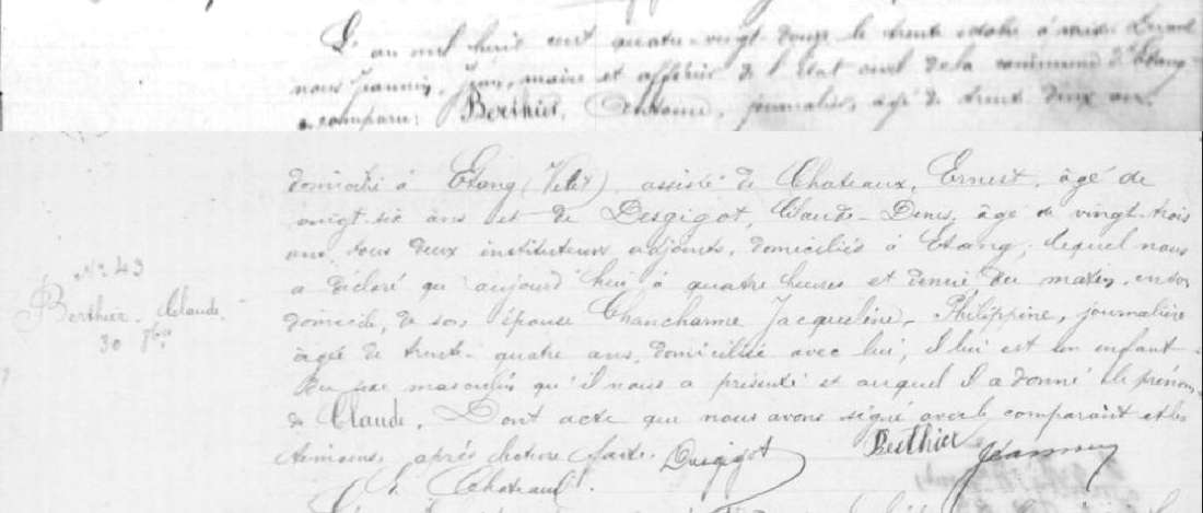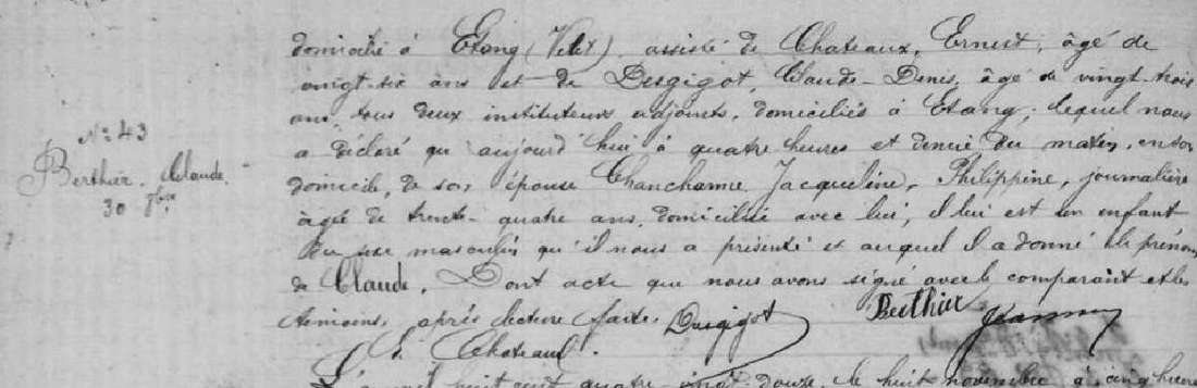 Celibataire. Ascendant vivant Mm Berthier-Chauchaisne ?