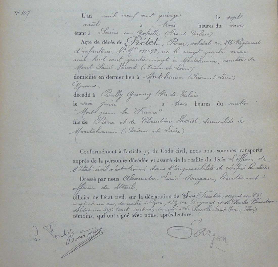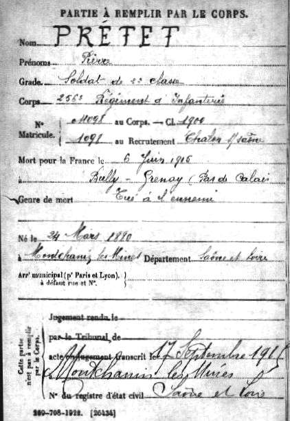 Montchanin-les-Mines (Commune renommée Montchanin le 04/10/1958) Avis de liste récapitulative DC = Courrier de S&l du 03-02-1916