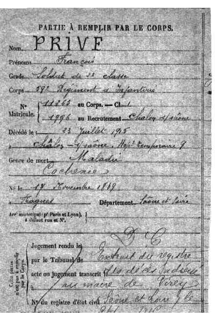 Lieu précis de décès : Hôpital temporaire n° 9
