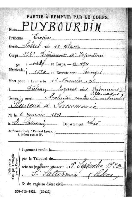Lieu précis de décès : Lazaret des prisonniers