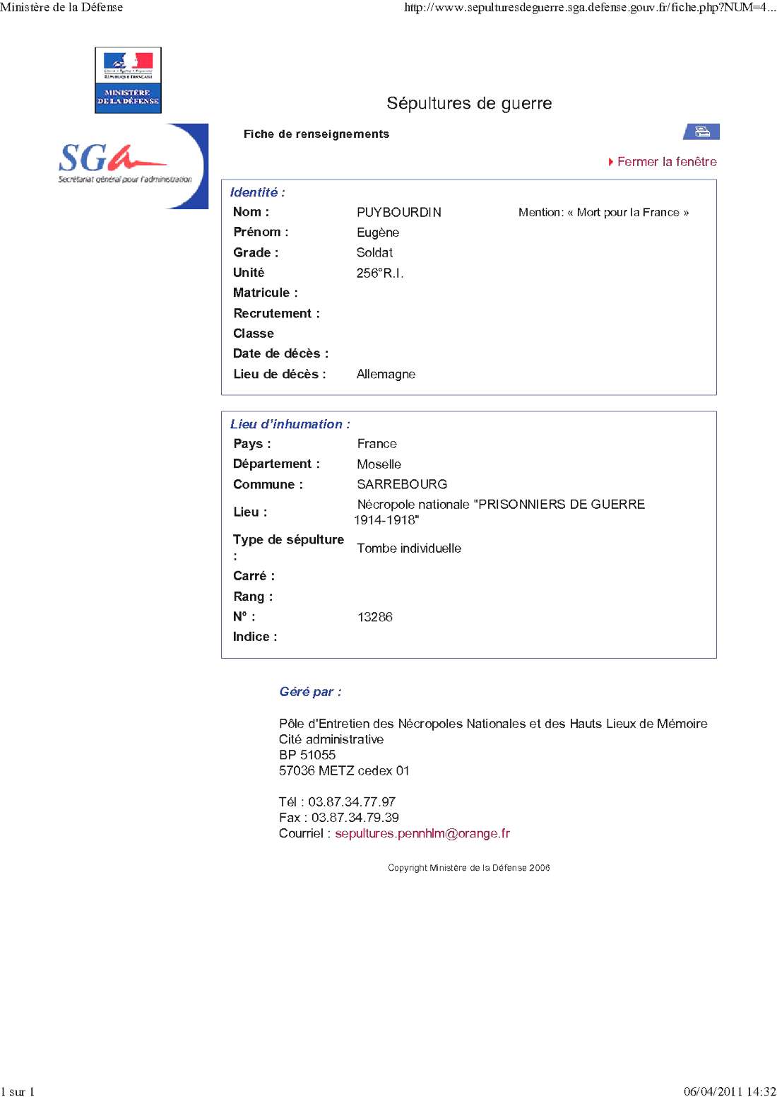Régiment : 256ème R.I.