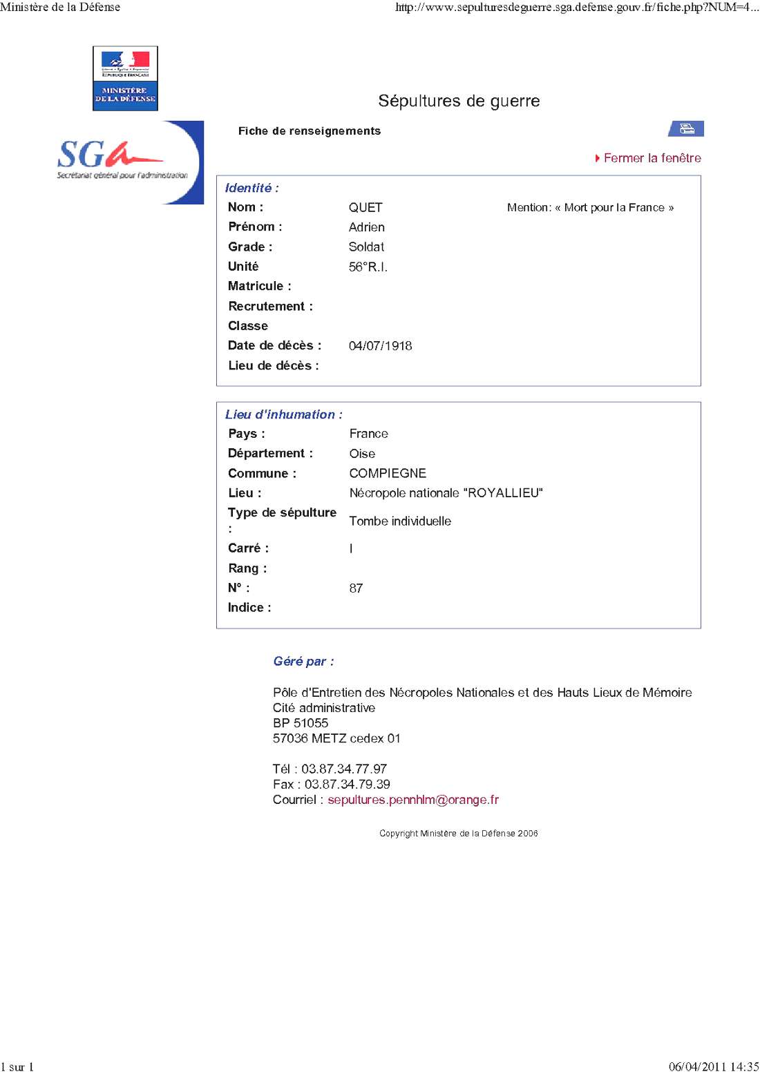 Sépulture : Nécropole nationale Royallieu à Compiègne (60)