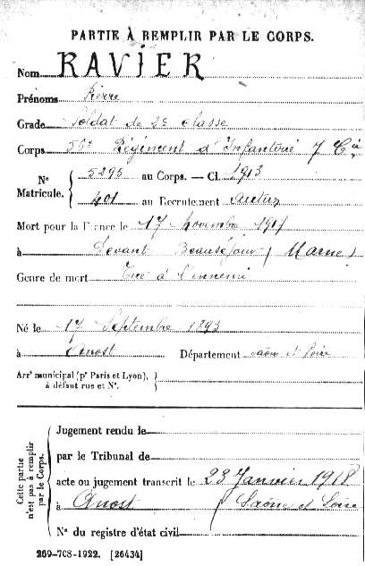 Père : M. Ravier, marié