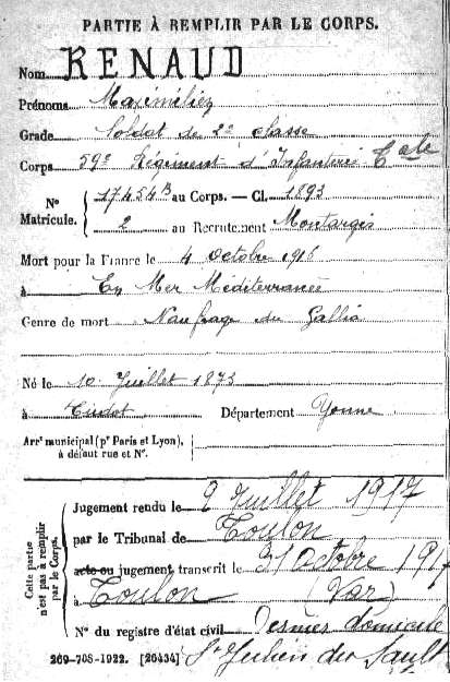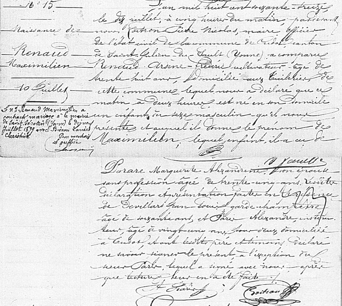 Père : RENAUD Arsène Frédéric